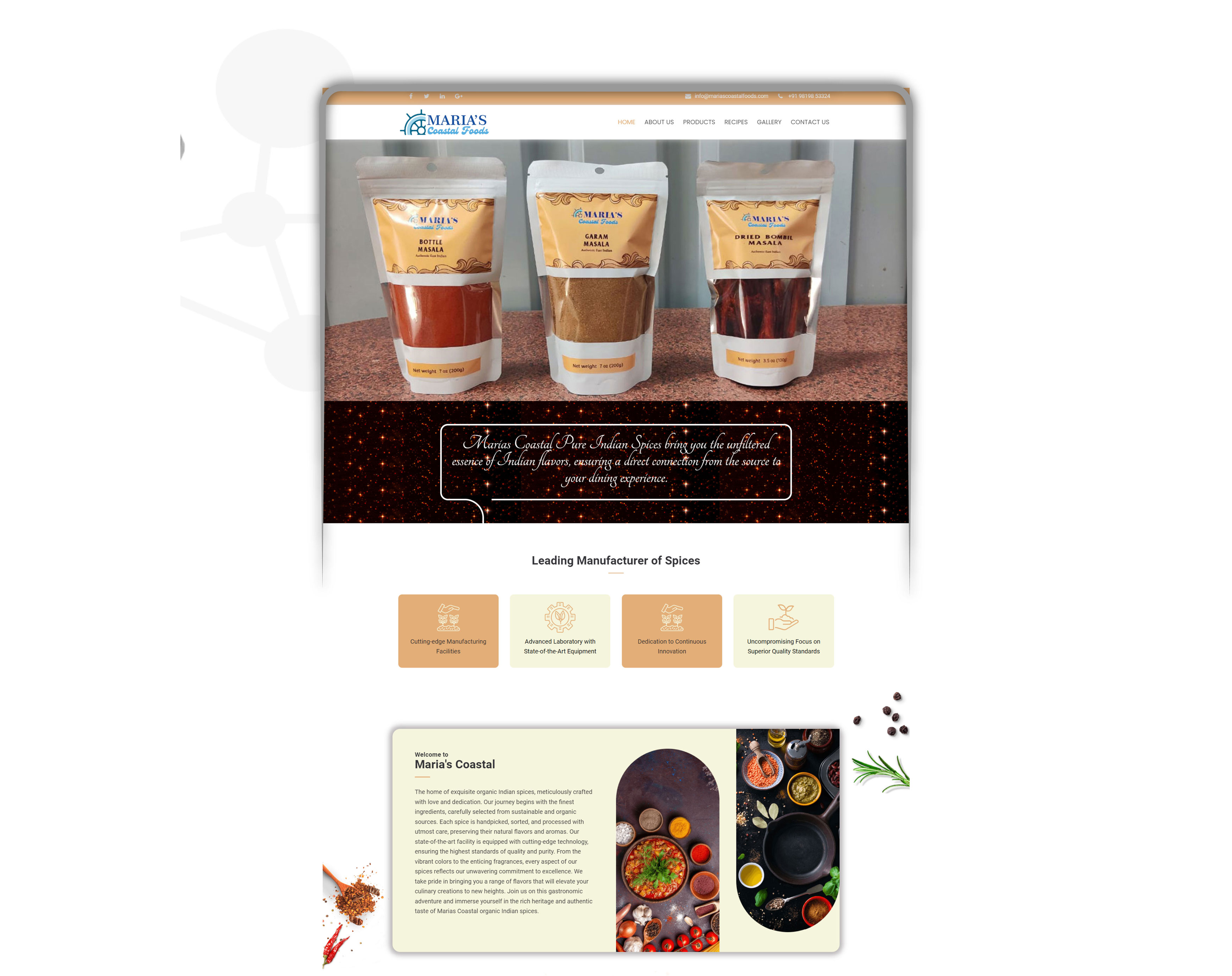 The home of exquisite organic Indian spices, meticulously crafted with love and dedication. Our journey begins with the finest ingredients, carefully selected from sustainable and organic sources. Each spice is handpicked, sorted, and processed with utmost care, preserving their natural flavors and aromas. Our state-of-the-art facility is equipped with cutting-edge technology, ensuring the highest standards of quality and purity. From the vibrant colors to the enticing fragrances, every aspect of our spices reflects our unwavering commitment to excellence. We take pride in bringing you a range of flavors that will elevate your culinary creations to new heights. Join us on this gastronomic adventure and immerse yourself in the rich heritage and authentic taste of Marias Coastal organic Indian spices.